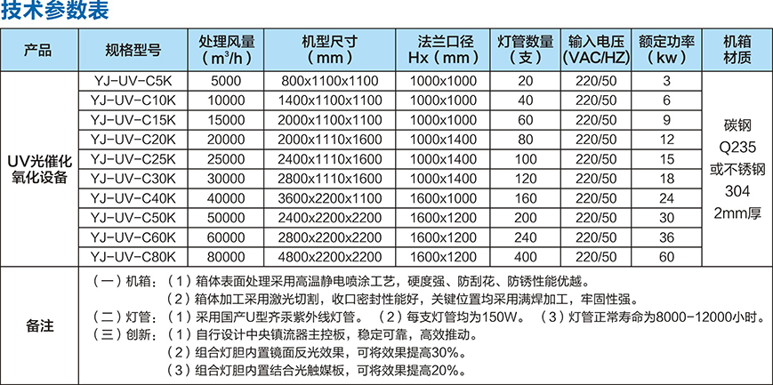 (1)本产品利用特制的高能高臭氧 UV 紫外线光束照射恶臭气体,裂解恶臭气体如:氨、三甲胺甲硫氢、甲硫醇、甲硫醚、二甲二硫、二硫化碳和苯乙烯,硫化物 H2S、VOC 类,苯、甲苯、二甲苯的分子链结构,使有机或无机高分子恶臭化合物分子链,在高能紫外线光束照射下,降解转变成低分子化合物,如 CO2、H2O等。
